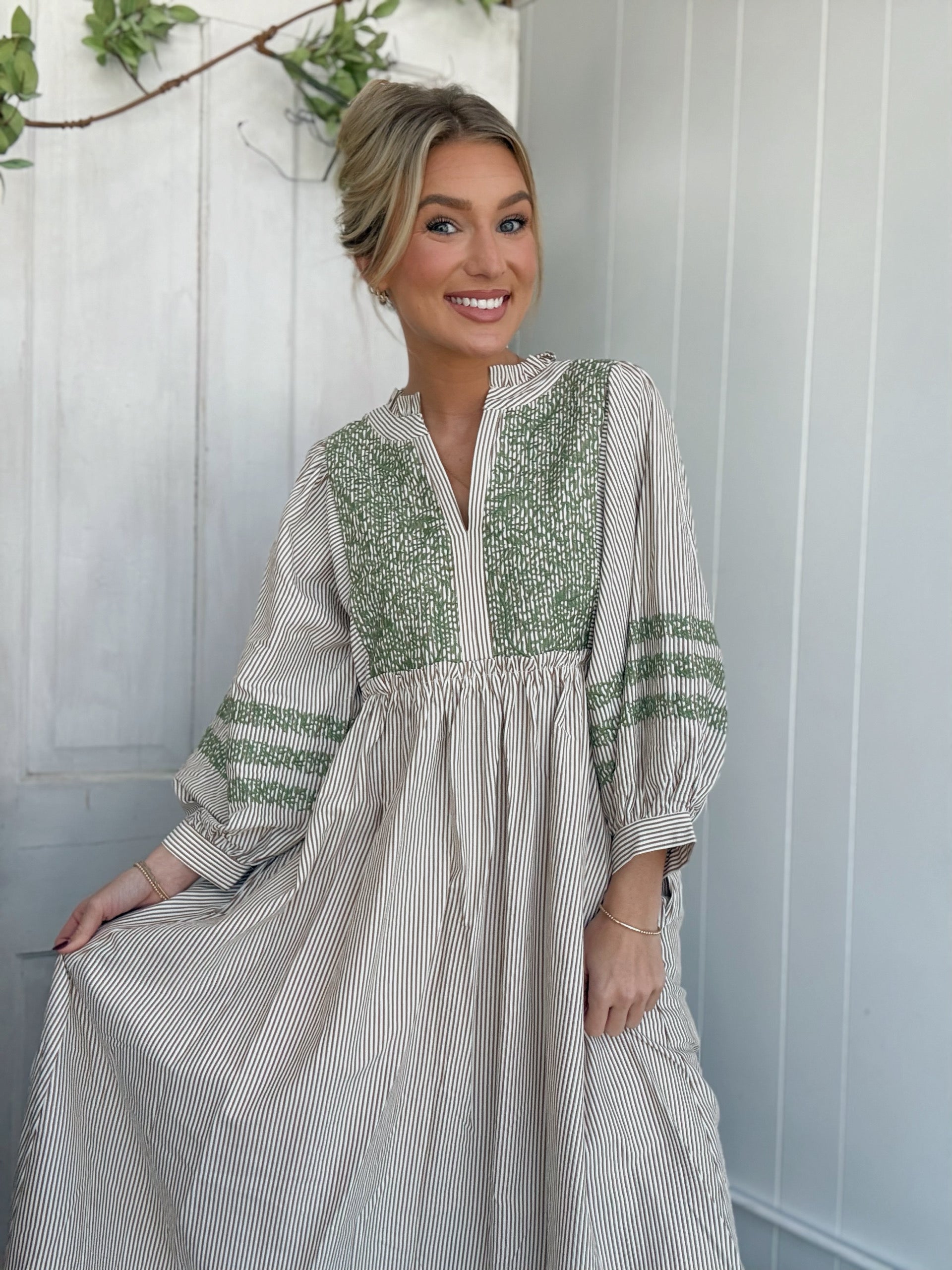 Toffee Stripe Detail Cuff Sleeve Maxi