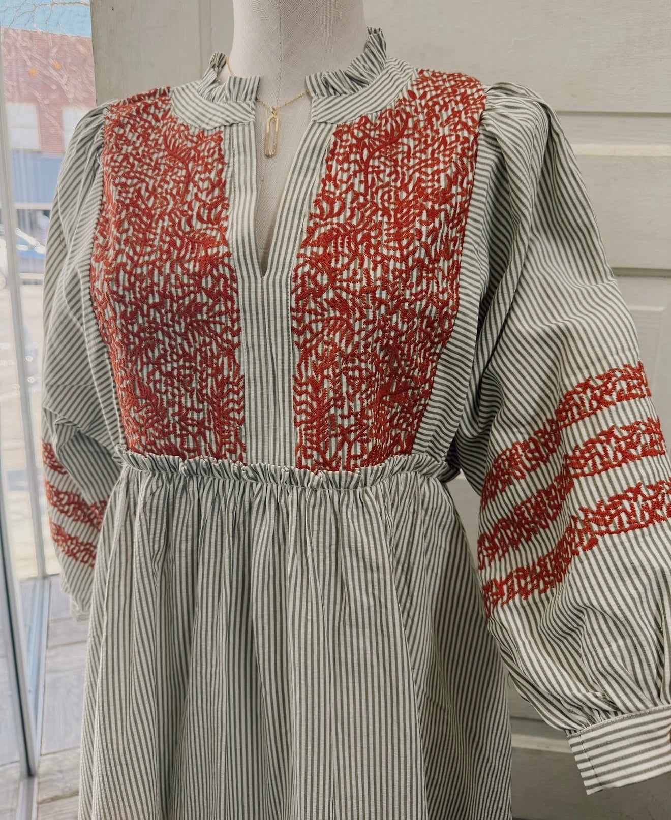 Olive Striped Detail Cuff Sleeve Maxi